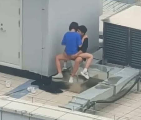 Hai em học sinh phang nhau trên sân thượng