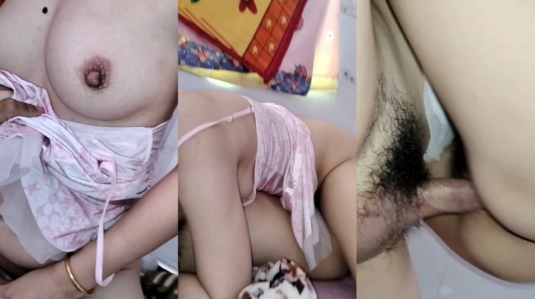 Vợ yêu váy hồng nằm trên dập xuống như máy khâu